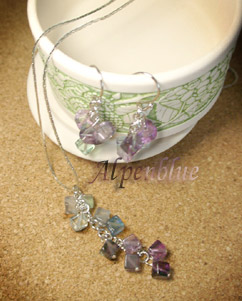 使用天然石:フローライト紫からグリーン、ブルーのグラデーションが美しいキューブカットのビーズです。 |
