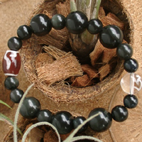 誘惑に打ち勝ち、雑念を払うので目標に向かって突き進む事ができると言われています。 禁酒、禁煙などのお守りとしても人気があります。 写真は「レインボーオブシディアン」 一見、ただの黒い石なのですが、よく見ると緑や紫の照りがあり美しいです。